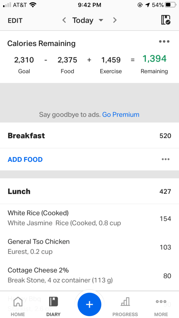 I have realized the importance tracking intake is at its highest when working from home. It is so damn easy to mindlessly eat your way through the day at home. Nobody is around to see. There are no coworkers that you have to hide destroying that whole bag of extra buttered popcorn from. Instead of my water, I’ll have a soda, or 7 cups of coffee, and almonds. Make that another handful of almonds. Oh, I forgot we have string cheese! Tracking helps us be conscious what we are eating so that you might give second thoughts to that container of Oreos sitting above the fridge.
