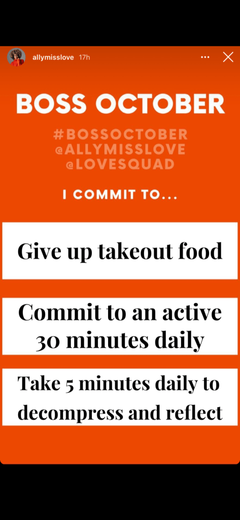 As I look to October, I want to continue this consistency. I plan on cutting out takeout for the month. Not only do I not really need to spend all that money, but I also ruin my intake as I never am good about disciplining myself to eat takeout in moderation. In addition to the cutting takeout, I am committing to 30 minutes for exercise per day and 5 minutes (per day) of quiet reflection to calm my mind.