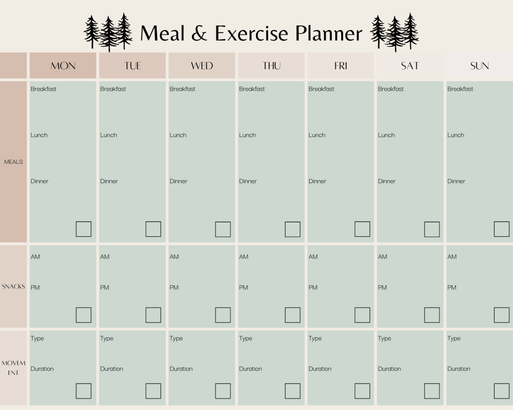 resources and downloads Download: Weekly Meal and Exercise Planner Share this: Click to share on X (Opens in new window) X Click to share on Facebook (Opens in new window) Facebook Click to email a link to a friend (Opens in new window) Email Click to share on Pinterest (Opens in new window) Pinterest Like Loading...